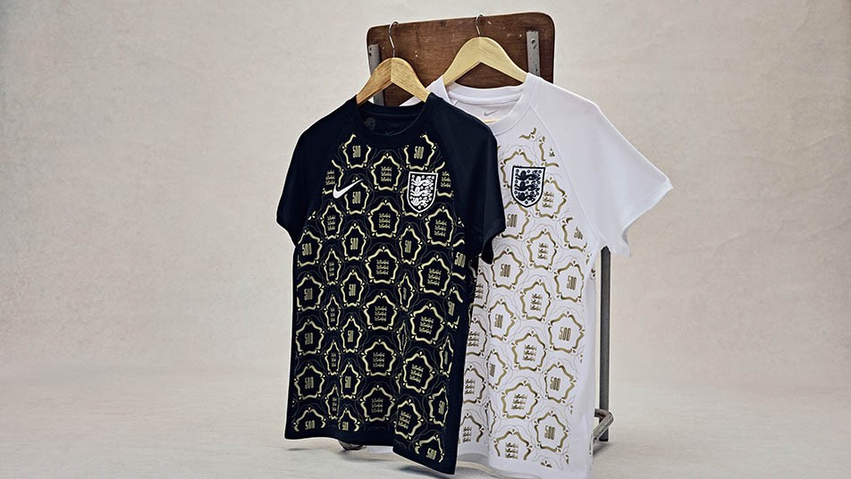 在对阵冰岛的第500场比赛中,球队将在热身时穿上耐克特别设计的限量纪念上衣,以致敬英格兰女足早期的先驱者。这款英格兰女足“500场纪念”赛前球衣提供黑白两种配色版本,两者在设计上完全一致。