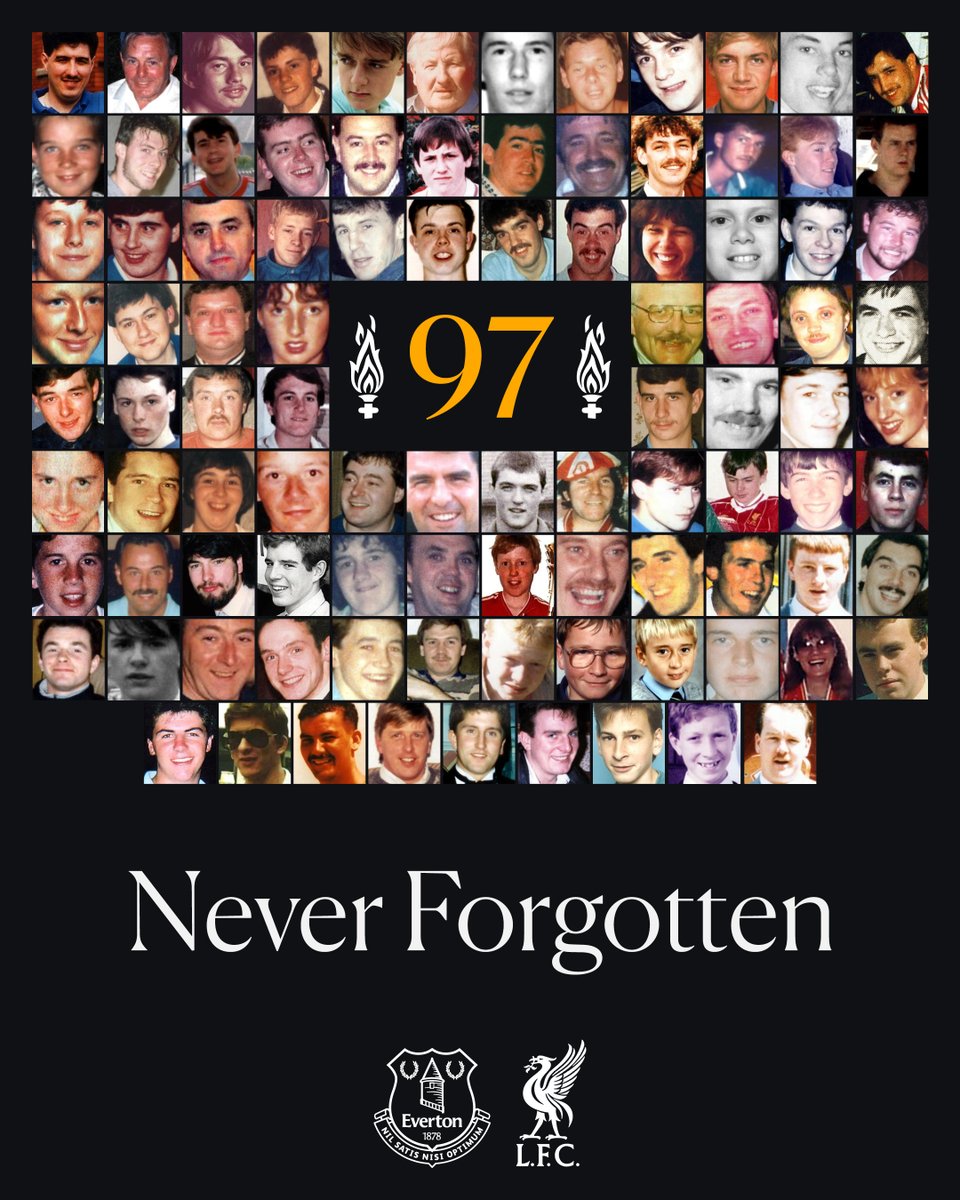 埃弗顿俱乐部在社媒上写道:“在希尔斯堡惨案37周年之际,我们缅怀97位遇难者。对足球界和我们这座城市而言,这都是沉痛的一天。 💙❤️那些逝去的人们,我们将永远铭记在心。”