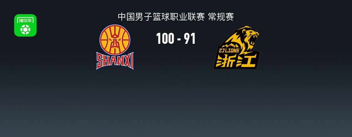 第四节山西贾明儒拿下9分,广厦巴里-布朗拿下13分,最终山西100-91战胜广厦