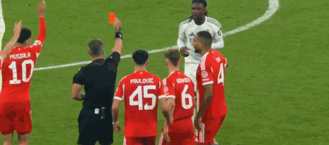 北京时间4月16日,在欧冠1/4决赛次回合的比赛中,卡马文加在替补出场仅仅24分钟的情况下就连吃两张黄牌被罚下场,最终皇家马德里也在客场3-4被拜仁慕尼黑逆转,两回合总比分4-6被淘汰出局。
