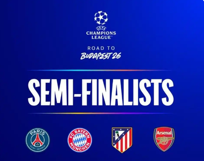 拜仁近4次欧冠交手均零封巴黎,但去年世俱杯巴黎曾2-0取胜。马竞时隔9年重返欧冠四强,阿森纳则是连续第二年进入半决赛。