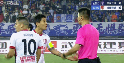 第23分钟,不满吹罚,韦世豪情绪激动地与裁判交涉