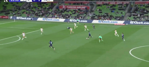 第19分钟,伯吉斯传球,亚当斯远射破门,纽卡斯尔喷气机1-0墨尔本胜利