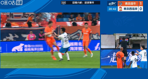 第34分钟,叶博亚切入禁区倒地,主裁判观看VAR后未判罚点球