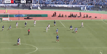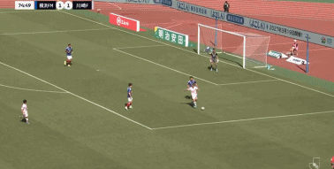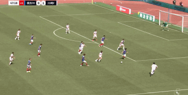 第45+3分钟,扳平比分,天野纯破门,横滨水手1-1川崎前锋