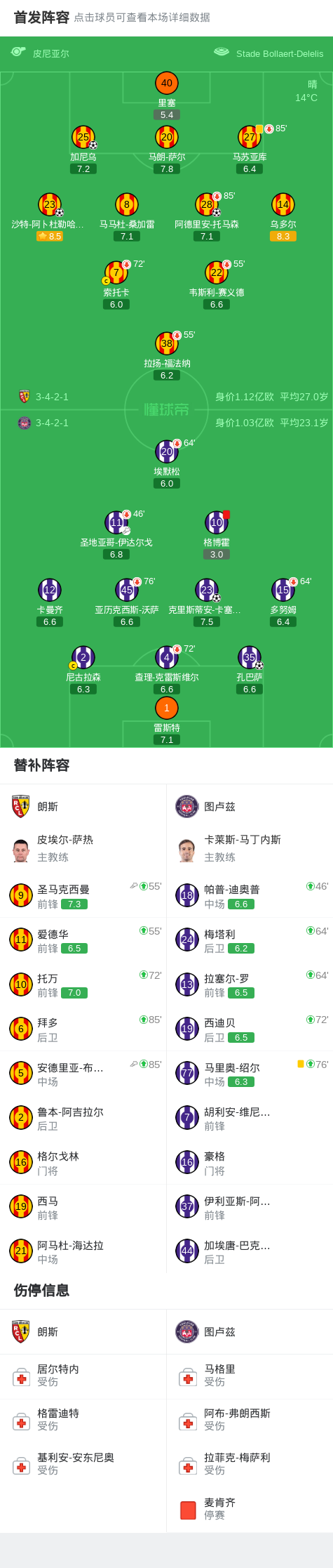北京时间4月18日法国足球甲级联赛第30轮,朗斯主场迎战图卢兹。