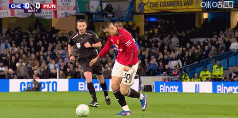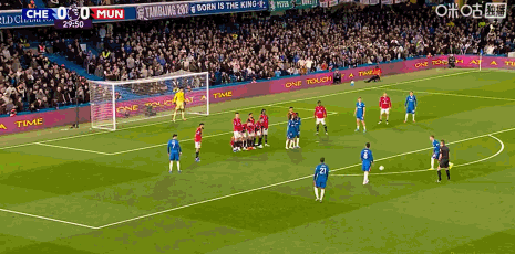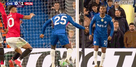 第30分钟,恩佐任意球射门,被曼联人墙挡出