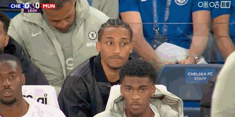 第18分钟,镜头给到场边,若昂-佩德罗替补席观战