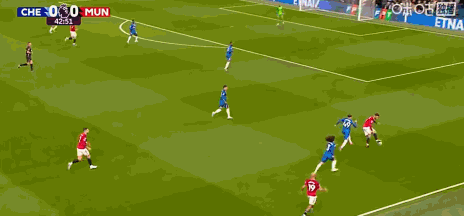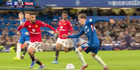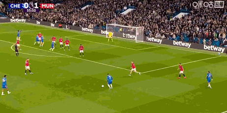 第33分钟,恩佐挤掉马兹拉维和卡塞米罗,随后兜射稍稍偏出