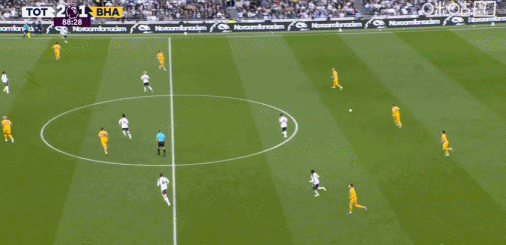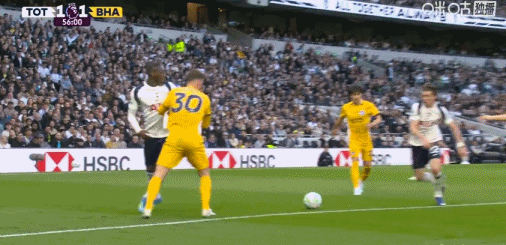 第90+5分钟,丹索被抢断,范赫克助攻吕特补时破门,布莱顿2-2热刺