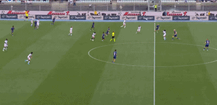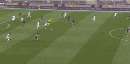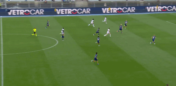 第45+2分钟,米兰后防被打穿,拉菲克-贝尔加利单刀打门被迈尼昂化解