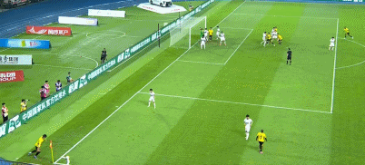 第10分钟,角球机会,韩轩头球击中杨一虎折射入网,广州豹1-0领先