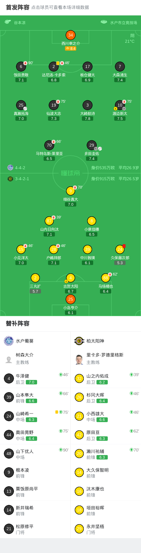 第77分钟,水户蜀葵主教练树森大介不满判罚,裁判出示红牌将其罚出场外