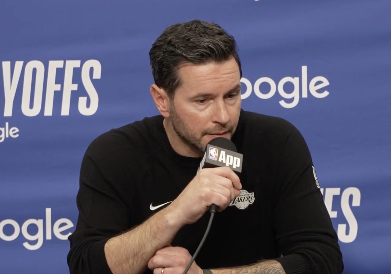 北京时间4月19日,NBA季后赛首轮的争夺正式打响,在一组西部对决中,湖人主场107-98战胜火箭,总比分1-0领先。赛后,湖人队主帅雷迪克接受了媒体的采访。