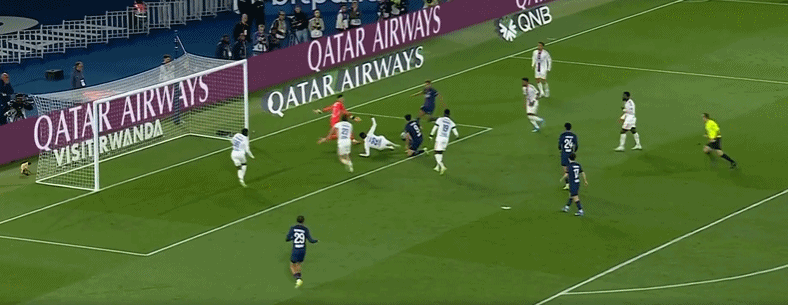 第33分钟,巴黎获得点球机会,贡萨洛-拉莫斯主罚被扑出