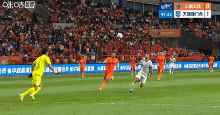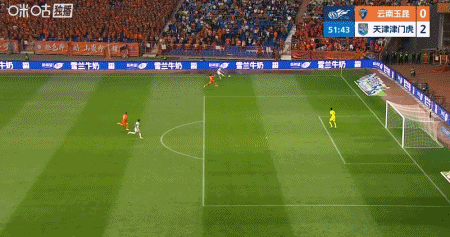 基莱斯传中,谢蒂内倒地射门将比分扩大,津门虎2-0云南