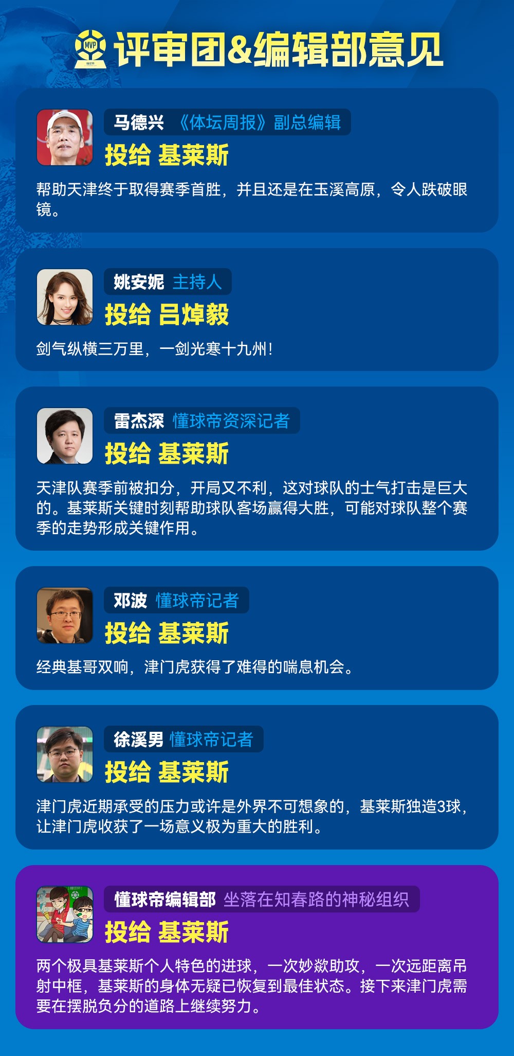 这是基莱斯上赛季登陆中超以来第四次当选懂球帝中超MVP,上赛季他曾三次成功当选。