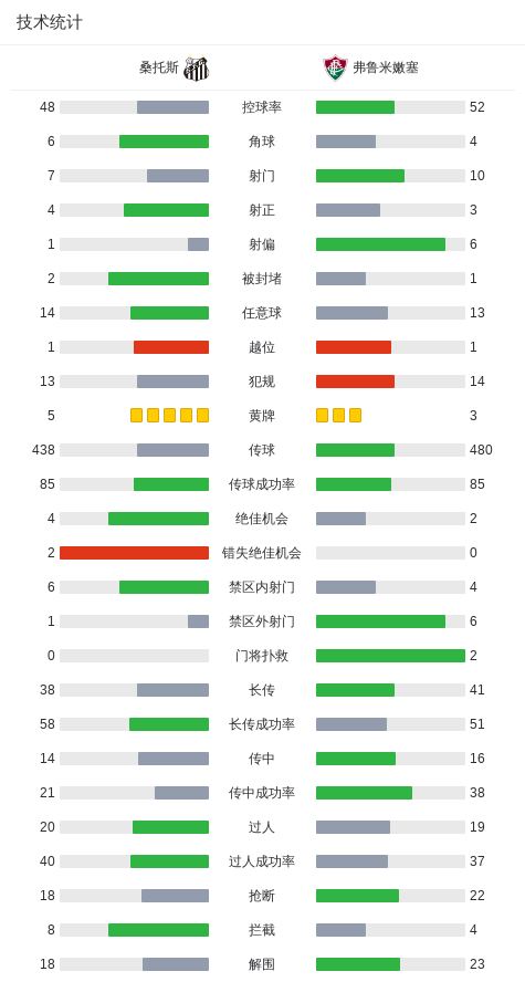 第60分钟,古加传中,卡斯蒂略头槌扳平比分,桑托斯2-2弗鲁米嫩塞