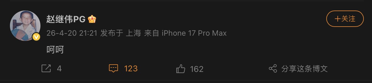经历了本场惨败后,赵继伟在个人社交媒体发文:“呵呵”。简短的两个字也看出了这位曾经总决赛MVP的失望与无奈。