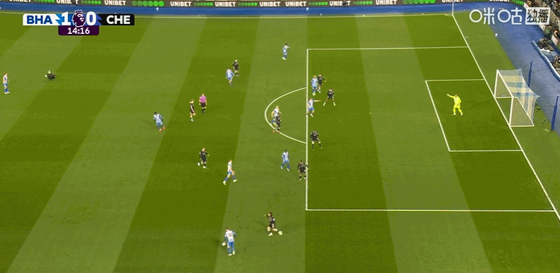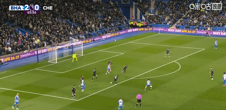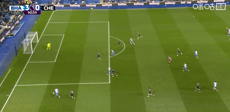 第90+1分钟,德克伊珀左路传中,维尔贝克推射破门!布莱顿3-0切尔西
