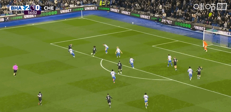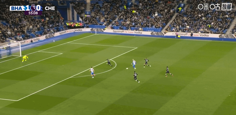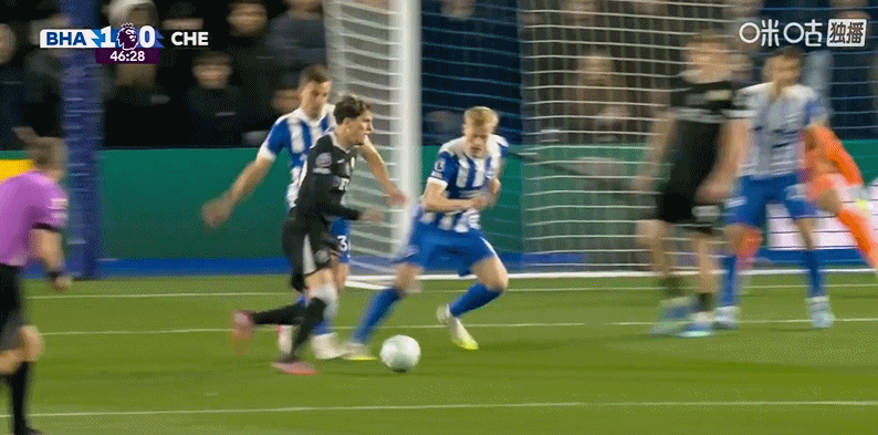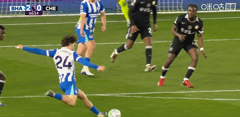 第4分钟,哈托头球解围没能顶远,卡迪奥卢推射破门!布莱顿1-0切尔西