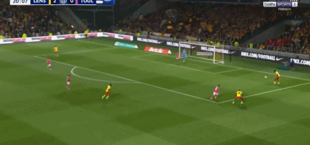 第74分钟,阿卜杜勒哈米德横传,托马森推射破门,朗斯4-1图卢兹