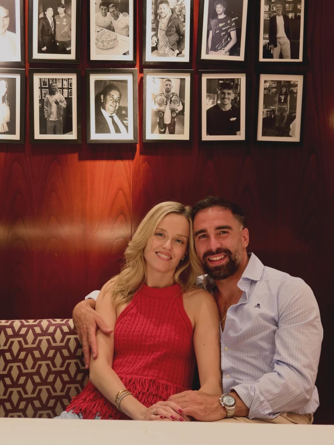 卡瓦哈尔妻子达芙内-卡尼萨雷斯在社交媒体上晒出了自己带孩子观看丈夫训练的照片,还有她与卡瓦哈尔的合照,并配文:“我们的星期日”。