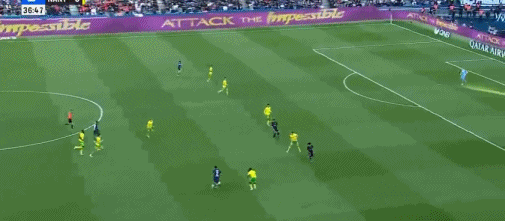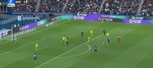 第38分钟,阿什拉夫传球,杜埃精彩小角度劲射破门,巴黎2-0南特