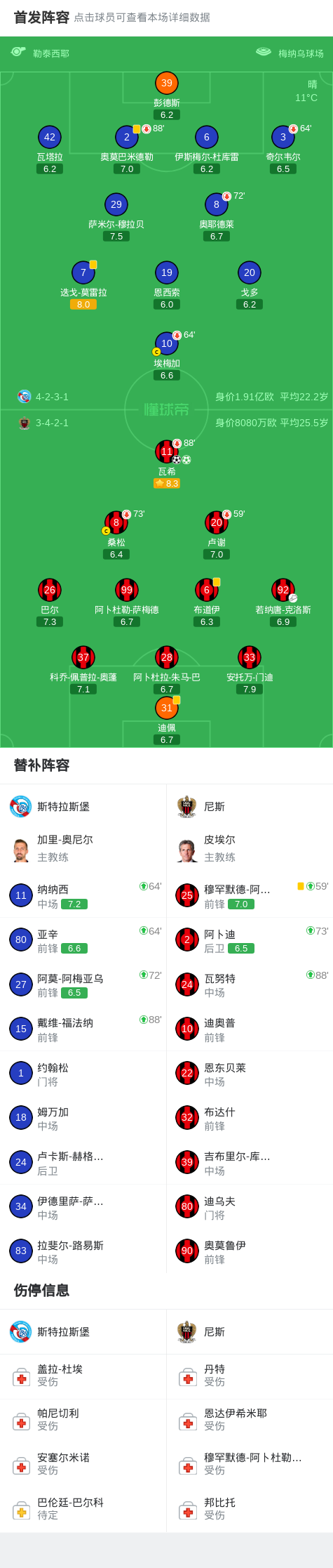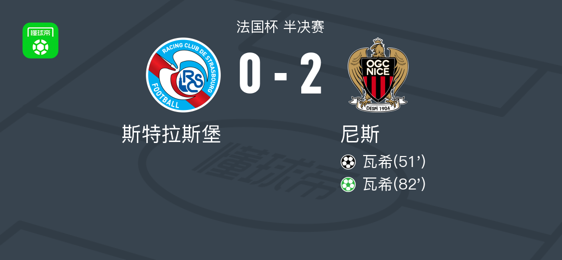 北京时间4月23日法国杯 半决赛,斯特拉斯堡对阵尼斯。尼斯瓦希梅开二度。最终比分斯特拉斯堡 0–2 尼斯。 点击查看本场比赛详细数据>> 点击查看法国杯完整积分榜>> 精彩瞬间 第51分钟,尼斯球员若纳唐-克洛斯助攻瓦希打入一球。 第82分钟,尼斯球员瓦希罚入点球。 球队阵容 技术统计 文章导航 亚马尔代表巴萨单赛季西甲16球,本世纪本土球员仅次于比利亚 杜埃:在输给里昂后,在法甲联赛中重新找回胜利的感觉很重要
