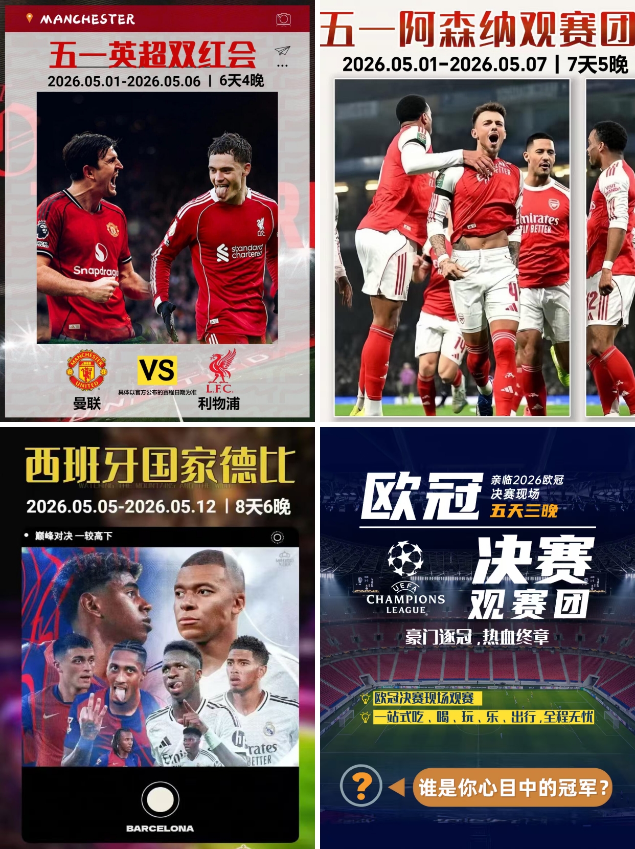 目前已到赛季末关键的冲刺阶段,英超、西甲和欧冠的冠军归属已成最大悬念!焦点对决层出不穷,快来现场见证吧!