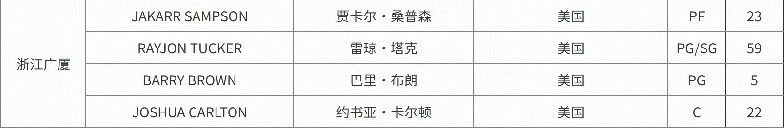 据最新注册信息显示,浙江广厦取消了新援马利克-威廉姆斯的注册,重新注册了桑普森。