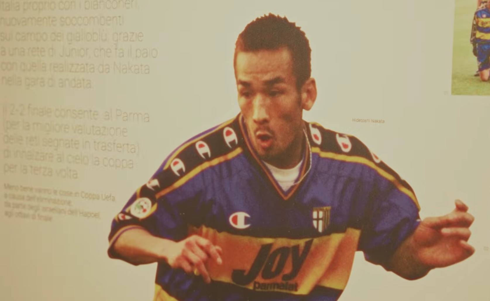 是的。比如在主场场馆热身的时候,虽然是室内热身场地,但我热身时站的位置旁边的墙上,贴着一张巨大的中田英寿的照片。所以热身的时候总能看到这张照片,当时就觉得“啊,他当时很活跃啊”这种感觉。